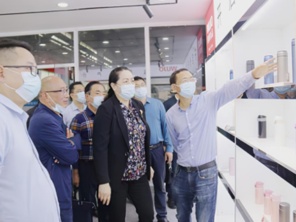 李有才一行参观了康钛尔锅碗杯自动化生产线和样品间,详细了解企业当前的生产经营、产品销售、技术研发等情况。看到琳琅满目的产品,李有才不时拿起,仔细察看,称赞康钛尔产品质量好、颜值高,又健康,产品前景广阔,并叮嘱市文旅广体部门,要争取将钛民品纳入旅游产品目录,切切实实帮助企业“纾困增效”。