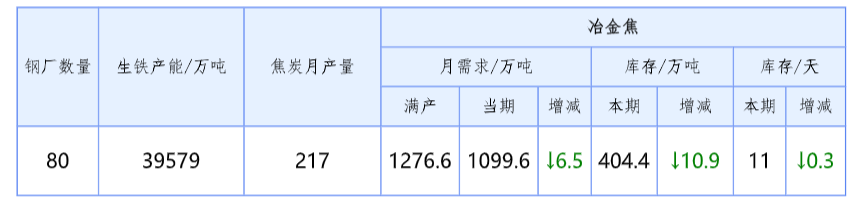 二、部分钢厂冶金焦库存汇总(4月6日—4月13日)