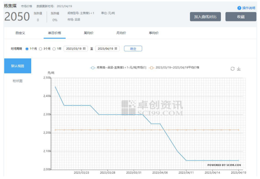 三 、吕梁地区近一月主焦煤价格变化曲线